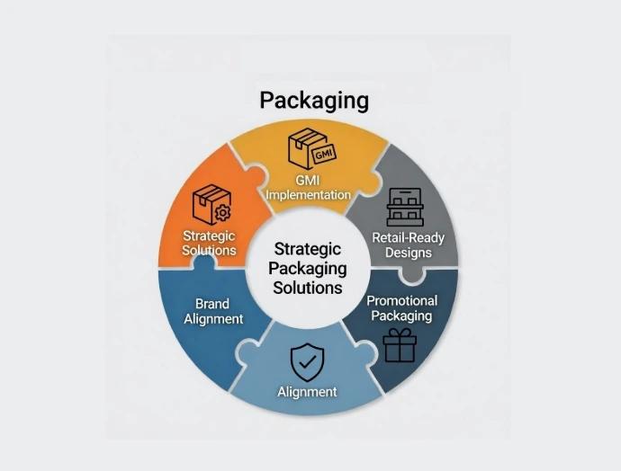 Strategic packaging solutions including GMI implementation, retail-ready designs, and promotional packaging support aligned with brand requirements.